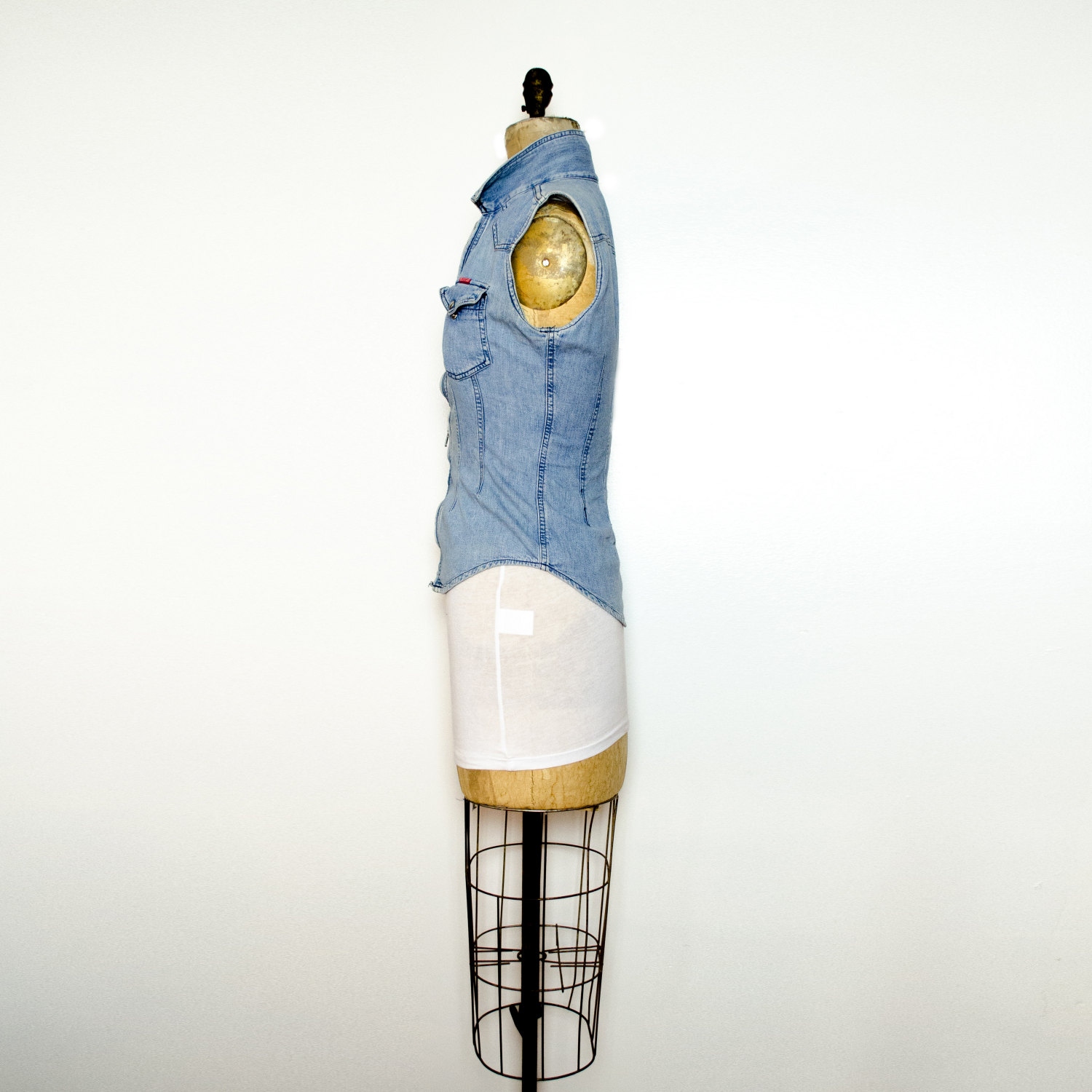 Vintage Blue Ripped Jean Vest XS / S Shirt Top Small X-Small