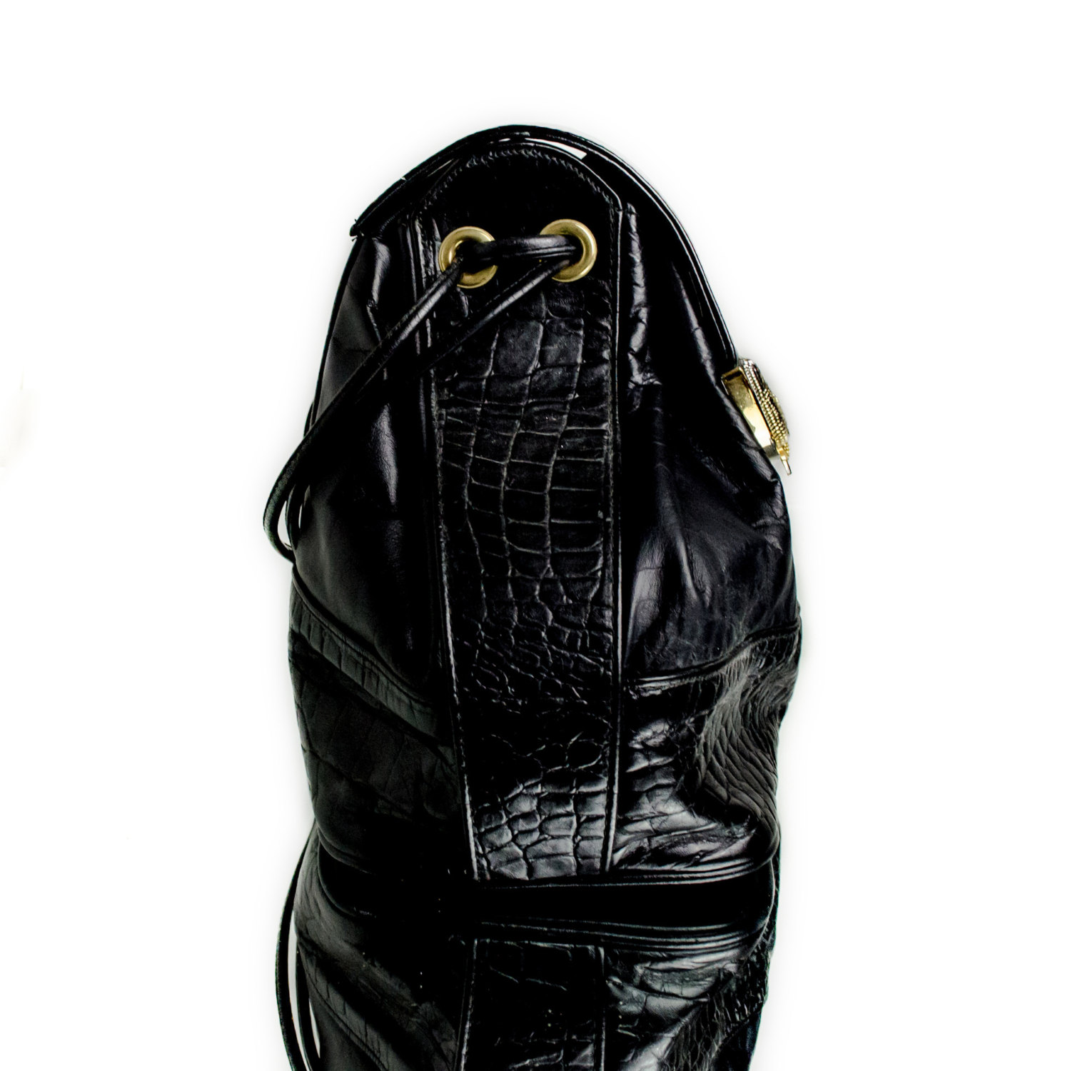 Vintage Black Bag Gold Alligator Leather Purse Drawstring Satchel Handbag