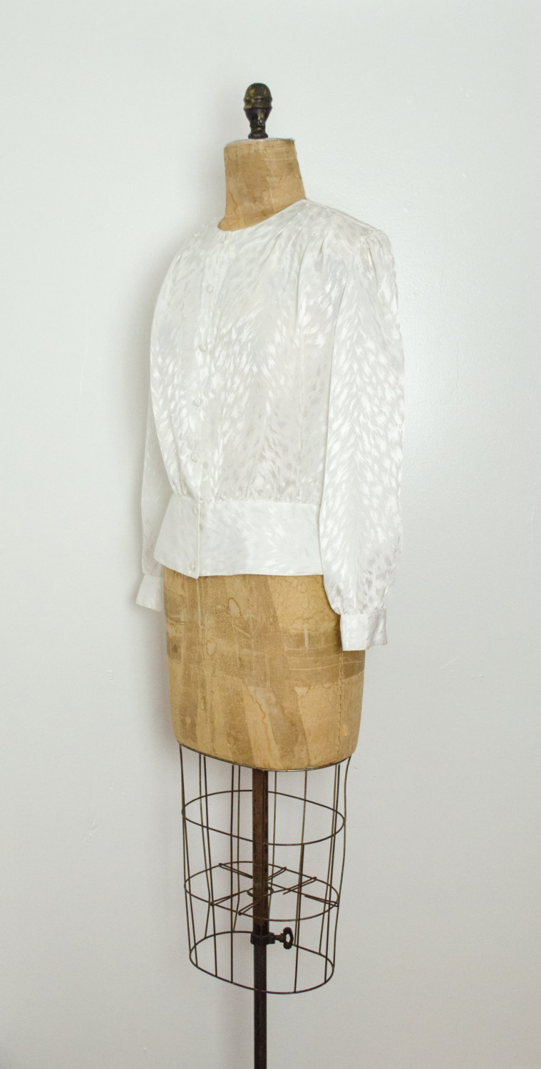 Vintage M / L Shirt White Button Down Peplum Long Sleeve Pearls Retro Medium Large Mad Men